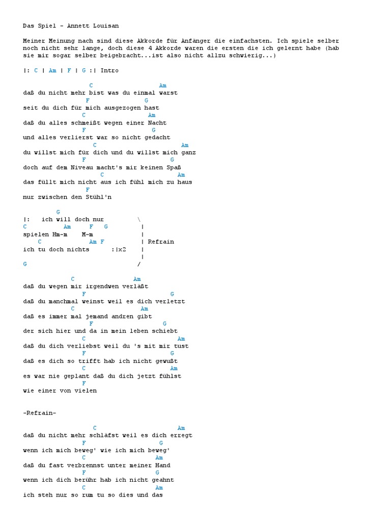 refrain g d am em das leben ist traurig, das leben ist schwer g d am em ich würde es mögen, wenn es einfacher wär g d am em die welt dreht sich weiter, die erde ist wund g d d* em um dich dreht sich nichts, hast einen knebel in dem mund.
